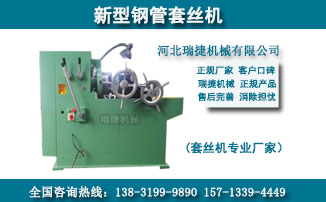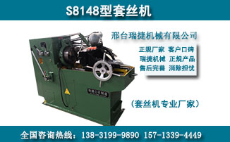 瑞捷套絲機設(shè)備采用液壓裝置成功解決勞動強度大,效率低,且無定位裝置,絲扣長短難控制等弊端,可一次型完成螺紋加工成型且螺紋牙形飽滿光滑。套絲機的主要部件及結(jié)構(gòu)是由套絲機床的傳動系統(tǒng),支架系統(tǒng),切線板牙頭,定位裝置及液壓系統(tǒng)組成,工作時只要將工件裝入夾鉗,其余程序?qū)⒆詣油瓿桑僮骱唵危ㄋ滓锥鸾萏捉z機廠家直銷,質(zhì)量有保證,減少不必要的中間環(huán)節(jié),為客戶帶來實實在在的優(yōu)惠政策,歡迎新老客戶洽談合作事宜和來電咨詢.